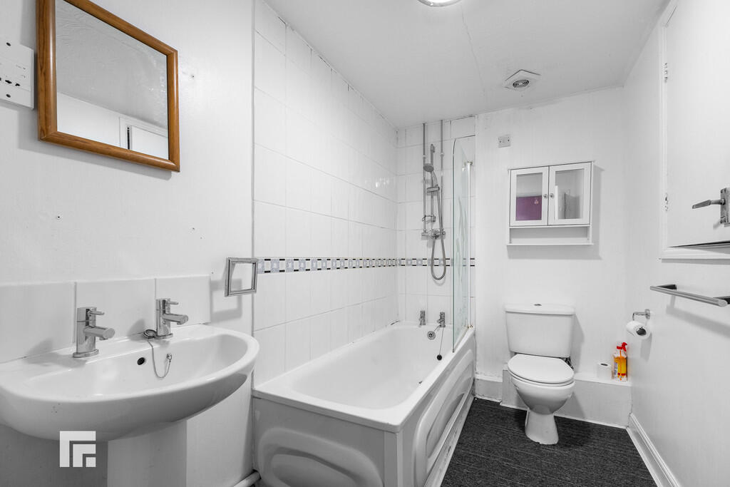 BATHROOM9' 2" x 5' 6" (2.80m x 1.70m) Carpet tiles to floor. Partially tiled walls. White three-piece-suite comprising WC, pedestal wash hand basin with hot and cold tap over and panelled bath with hot and cold tap over and mains powered shower attachment above. Pendant light fitting. Shaver point. Storage cupboard with shelving. Extractor.
