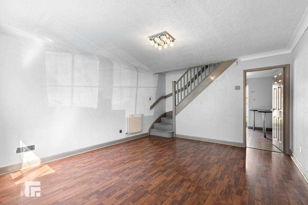 LOUNGE12' 9" x 14' 10" (3.89m x 4.53m) Laminate flooring. Double glazed uPVC to front aspect. Pendant light fitting. Two radiators. Power points. TV and telephone point. Door to kitchen. Stairs rising to first floor.