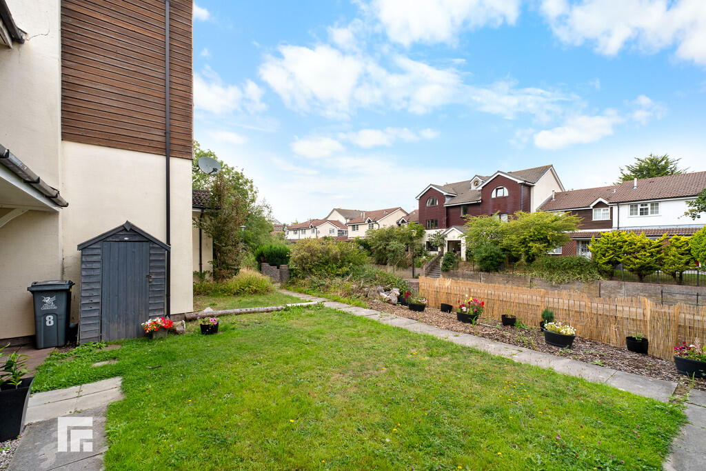 OUTSIDE Low maintenance front garden, with fence surround. Laid to lawn with planted flower beds, and partly paved. Storage shed and cupboard.