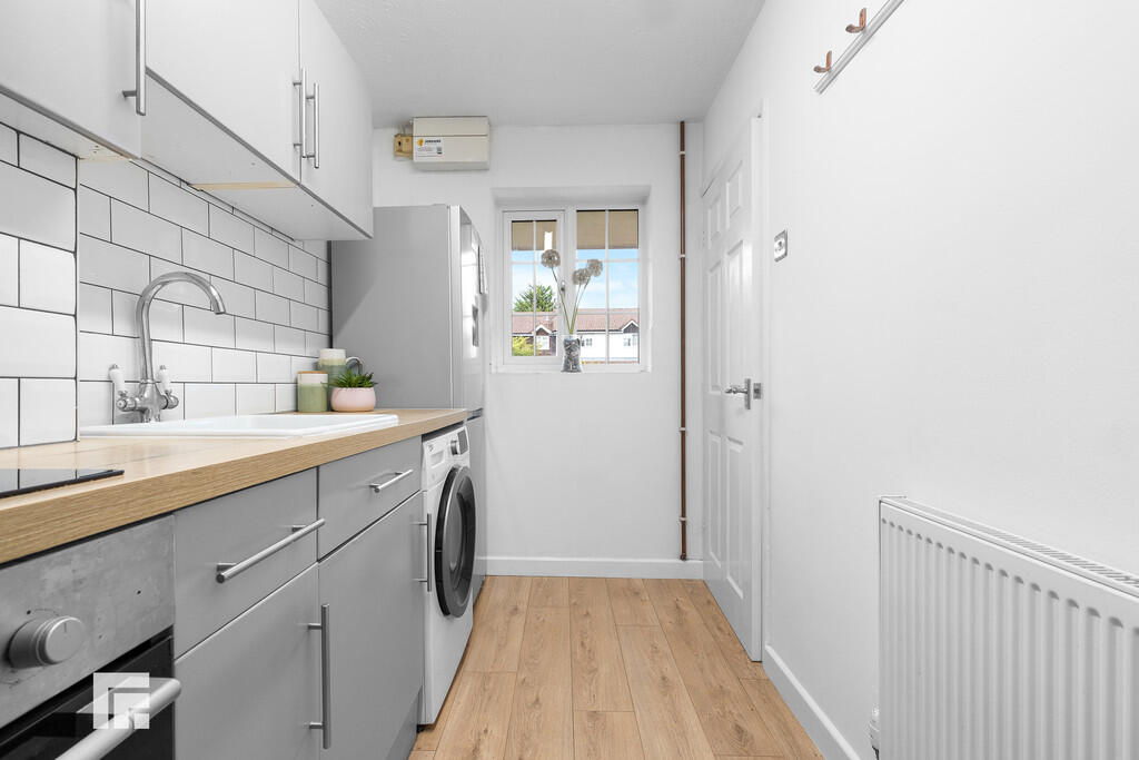 KITCHEN12' 4" x 5' 7" (3.76m x 1.72m) Double glazed uPVC window to front. Ample natural daylight. Continuation of LVT flooring. Part tiled walls. Fitted wall and base units with work surfaces incorporating inset sink with mixer tap over. Built in oven and four ring induction hob, with extractor over. Space for fridge/freezer and washing machine. Wall mounted radiator.