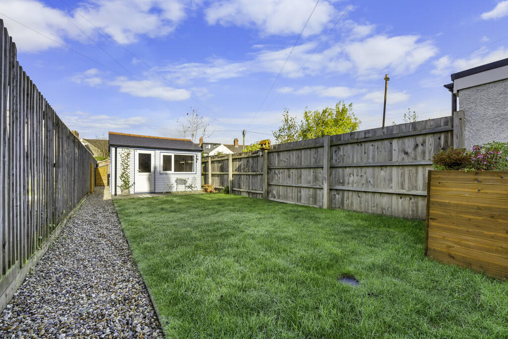 Well maintained enclosed rear garden. Mainly laid to lawn. Paved patio area. Wooden summer house and shed. Rear lane access. Two outside taps.