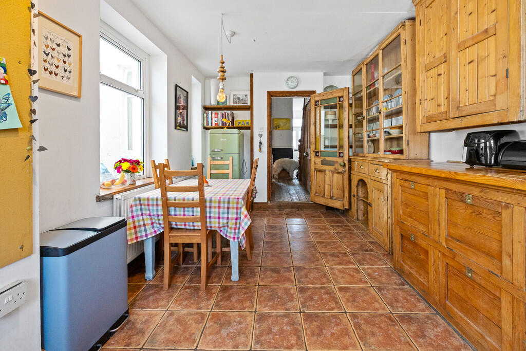 KITCHEN/BREAKFASTROOM18' 8" x 10' 1" (5.70m x 3.08m) Tiled flooring. Fitted kitchen with a range of wall, base and drawer units with worktops over incorporating stainless steel 1.5 sink and drainer and gas hob with extractor above and oven beneath. Pendant light fittings. Space for appliances such as washing machine and fridge/freezer. Double glazed uPVC windows to side and rear aspect. Power points. Door leading to rear garden.