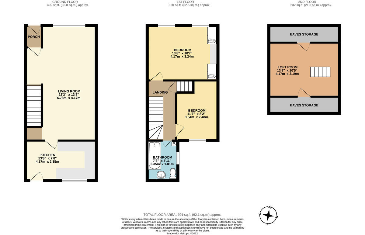 LOUNGE/DINER22' 2" x 13' 8" (6.78m x 4.17m) Double glazed uPVC windows to front. Extremely spacious. Wood flooring. Two wall mounted radiators. TV Aerial point. Telephone point. Door leading to kitchen. Carpeted stairway to first floor.