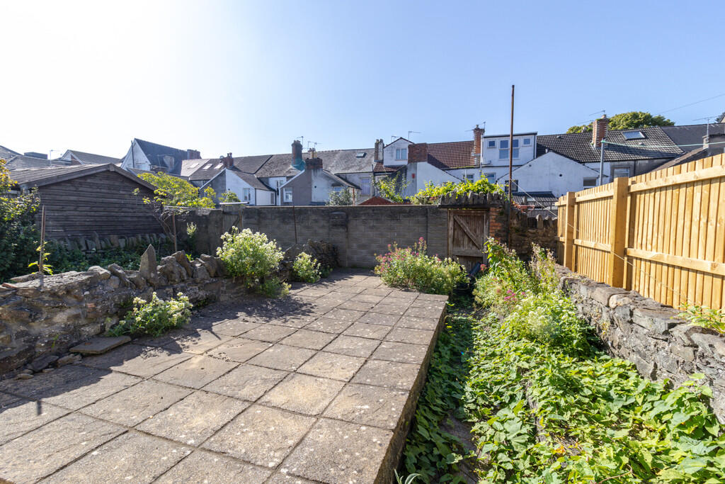 OUTSIDE Rear - Laid to patio. Fenced border. Gate to rear lane.