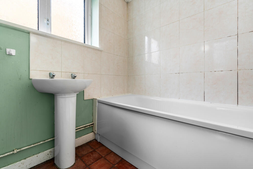 BATHROOM7' 6" x 6' 1" (2.30max x 1.86m) Double glazed obscured glass window to rear aspect. Vinyl flooring. Party tiled walls. Panelled bath, with shower fixture over. Pedestal wash hand basin, with hot and cold tap. W.C. Chrome fittings. Wall mounted radiator.