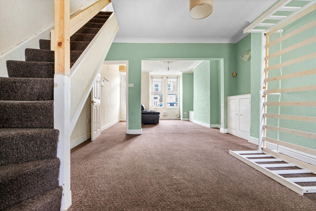 ENTRANCE Entered via front courtyard and uPVC door leading to entrance hall. Carpeted flooring. Wall mounted radiator. Door leading to living room and dining room. Stairway to first floor.