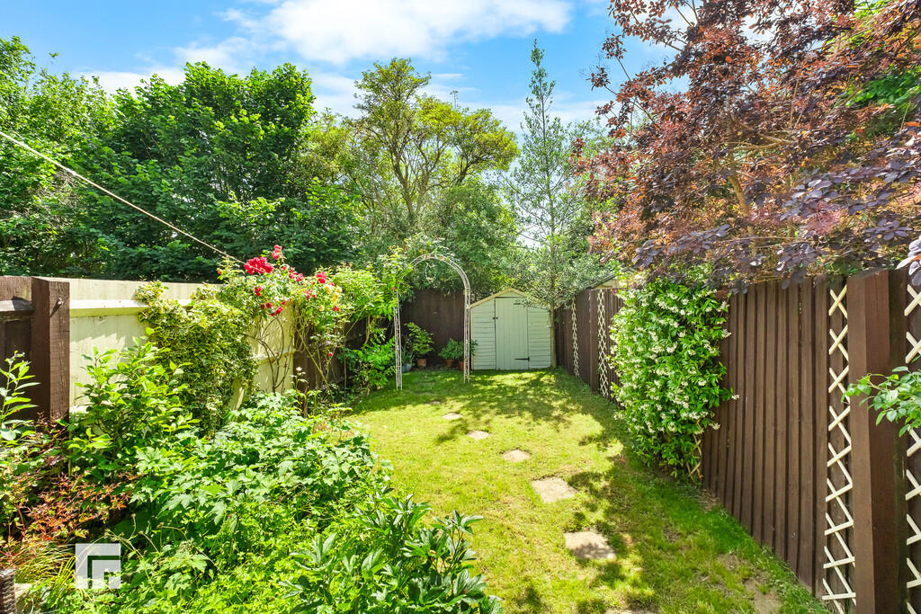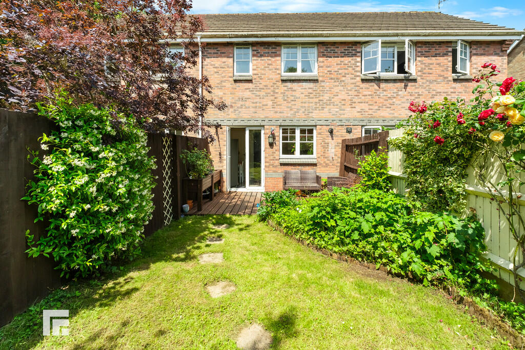 OUTSIDE Rear - South Facing. Patio sitting and lawn area. Fence to boundary. Private and enclosed garden.