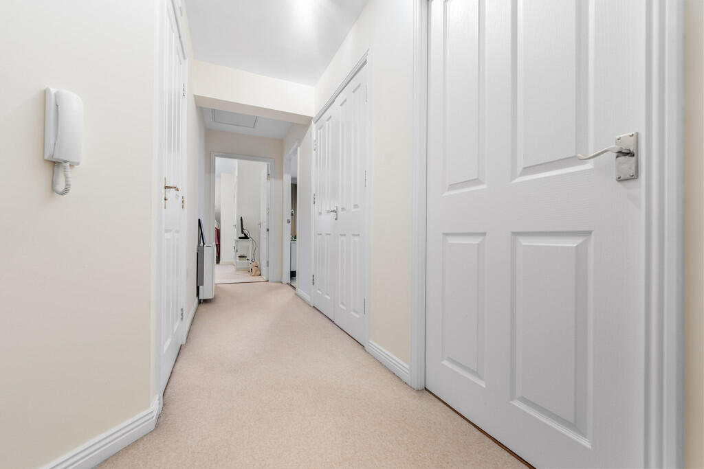 ENTRANCEHALL Entered via wooden door with spyhole. Doors to all principle rooms. Storage cupboard with shelving. Further storage cupboard housing hot water tank and shelving. Entry phone. Wall mounted storage heater. Door to :-