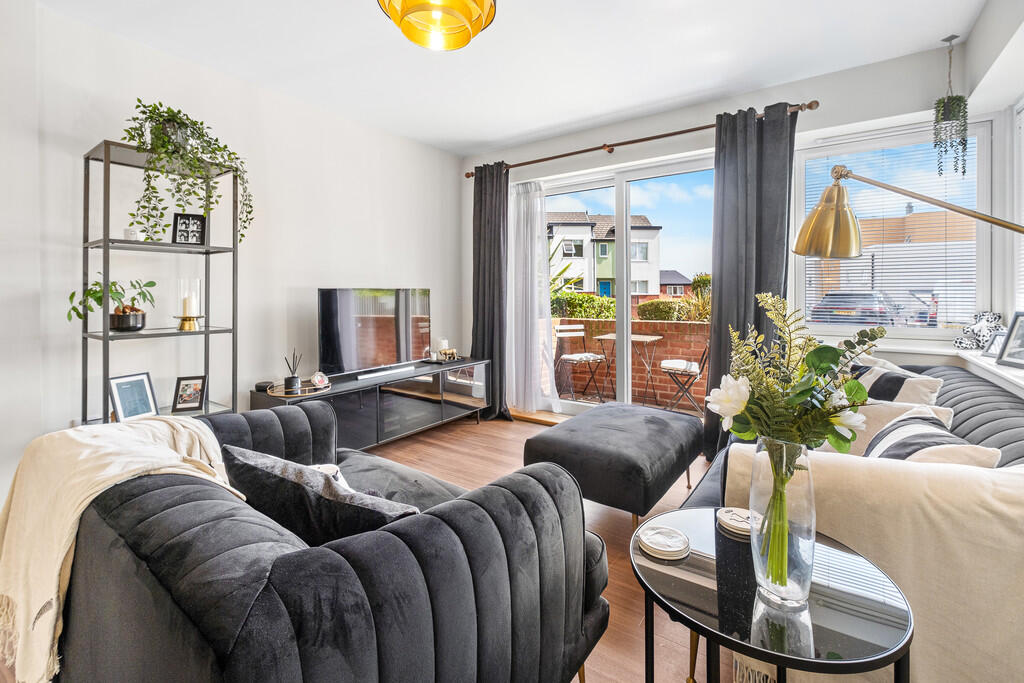 **GROUND FLOOR APARTMENT WITH SOUTH FACING TERRACE** IMMACULATELY PRESENTED** EX SHOW APARTMENT** Situated within the popular Penarth Heights development, this well presented two bedroom ground floor apartment briefly comprises communal entrance hallway with entry telecom system, open plan lounge/kitchen/diner with doors leading to south facing terrace. There are two double bedrooms with en-suite shower room to the principal bedroom, plus modern bathroom. Gas central heating, gated allocated parking. EPC Rating B