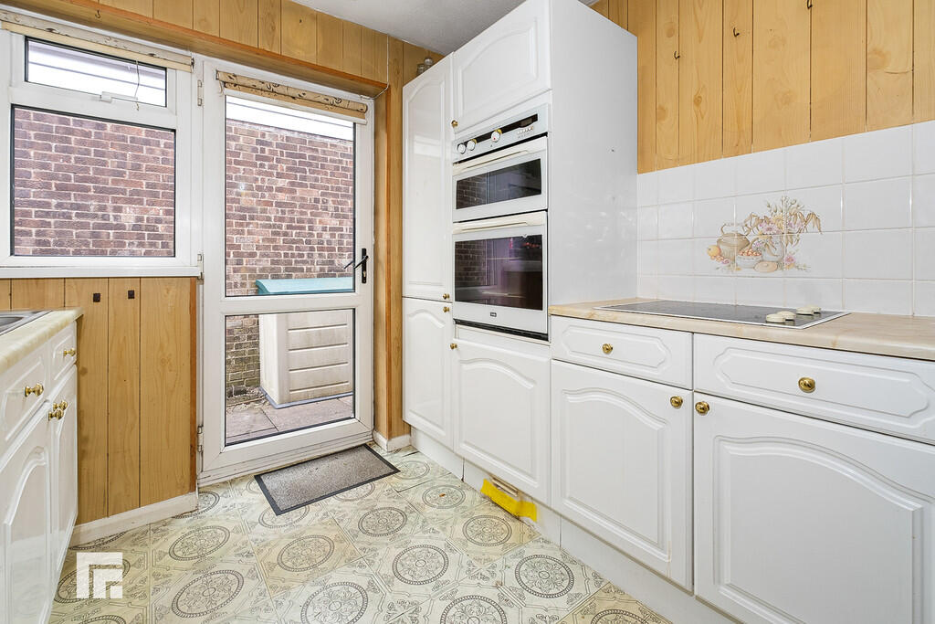 KITCHEN9' 1" x 8' 4" (2.79m x 2.55m) With units and worktops to two sides. Inset stainless steel sink with side drainer. Inset four ring hob. Integrated oven and grill. Space for fridge freezer. Plumbing for washing machine. Upvc double glazed door to side. Window to side. Radiator.
