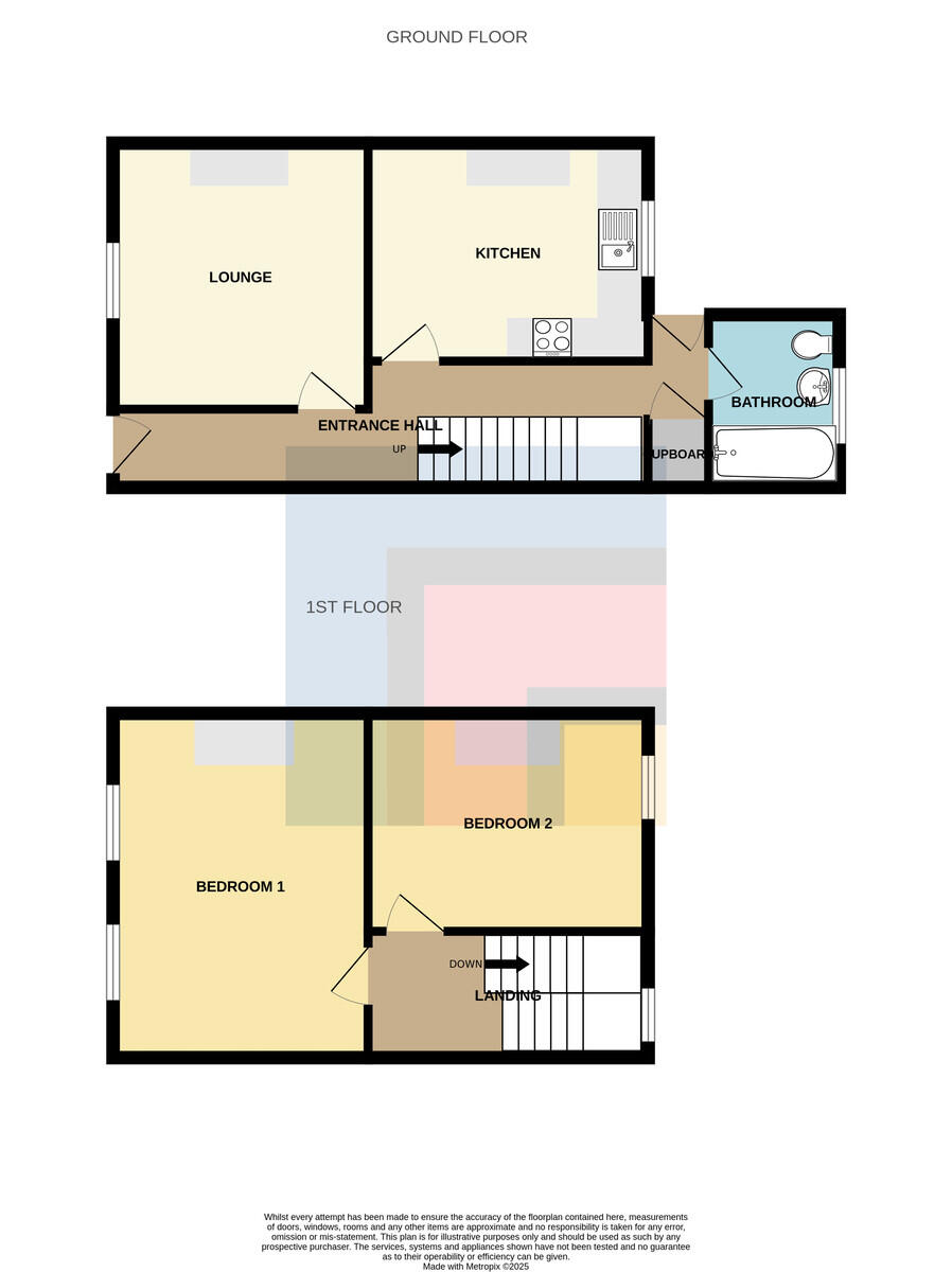 ENTRANCEHALL Entered via double glazed front door with obscure glass panel. Laminate wood effect flooring. Pendant light fitting. Radiator. Doors to all rooms. Stairs rising to first floor.