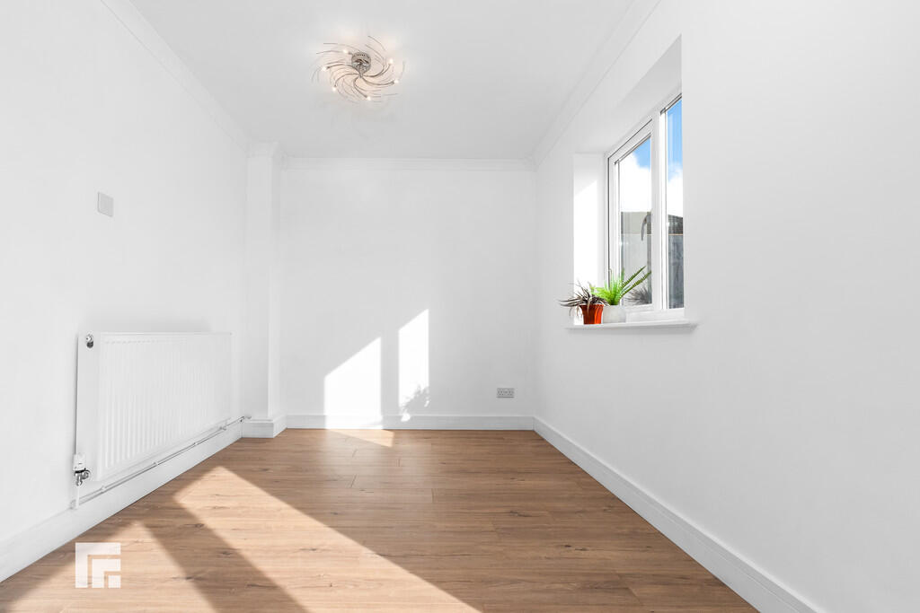 Window to front. Wall mounted remote controlled electric fire. Laminate flooring. Radiator.
