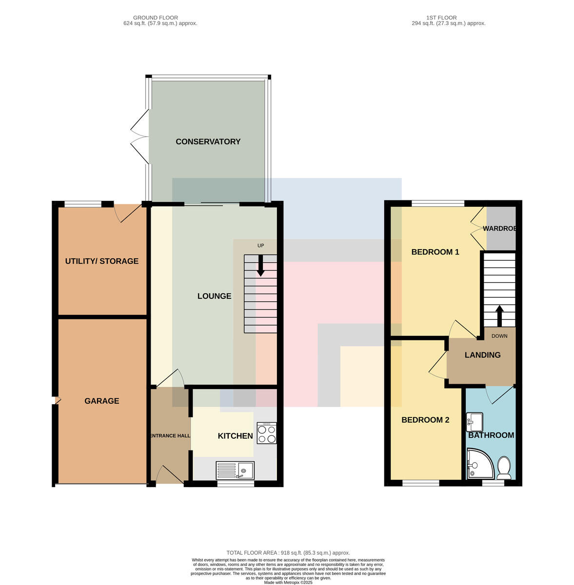 To the rear: Enclosed rear garden laid to lawn and patio with mature shrubs and borders. Door to Utility/Storage Room.