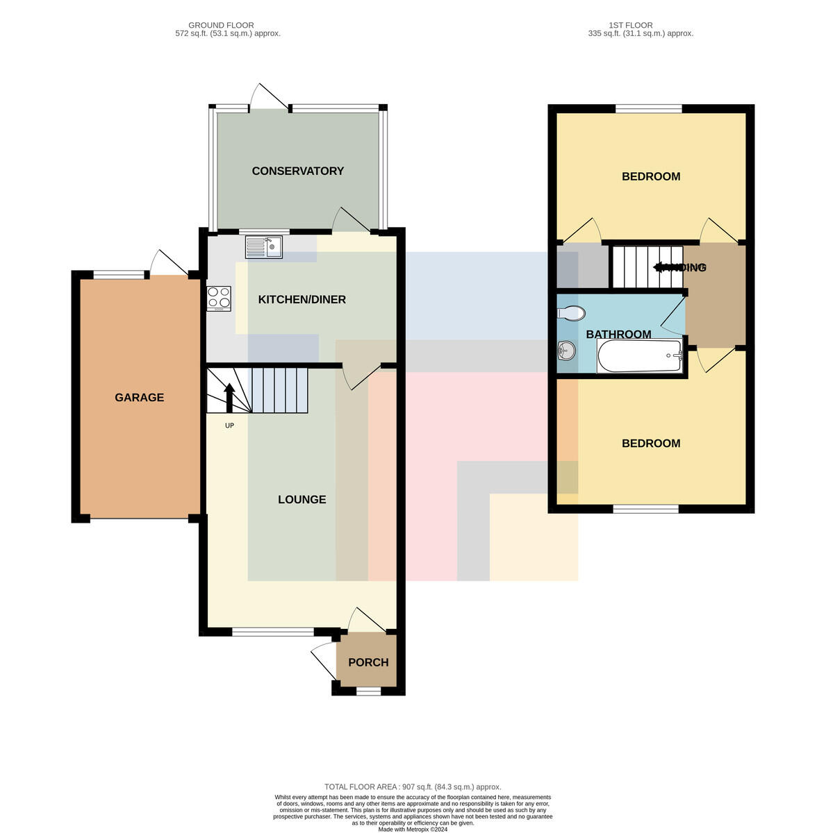GARAGE15' 10" x 7' 10" (4.85m x 2.40m) With up and over access door. Power and lighting. Door to rear garden.