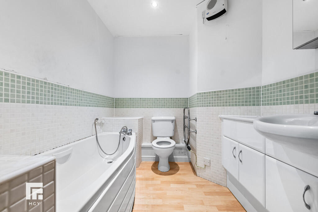 EN-SUITE Part tiled walls. Vanity wash hand basin with cupboard space underneath and wall mounted mirrored cabinet above. W.C. Spotlights. Shaver point. Please note, this en-suite is in need of full refurbishment, following a historical leak.