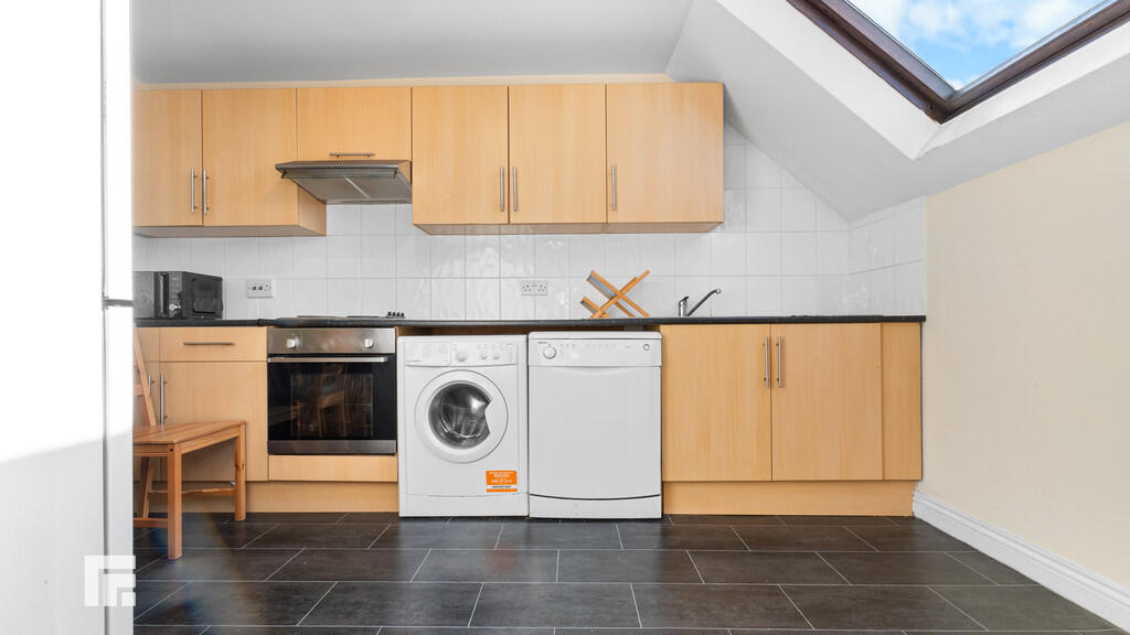 KITCHEN13' 5" x 7' 11" (4.09m x 2.42m) Sky light. Tiled flooring. Part tiled walls. Separate fitted kitchen with tiled flooring. Wall and base units incorporating stainless steel sink. Ample storage. Integrated oven with four ring electric hob and extractor hood over. Space for washing machine, dishwasher and fridge freezer. Extractor fan.