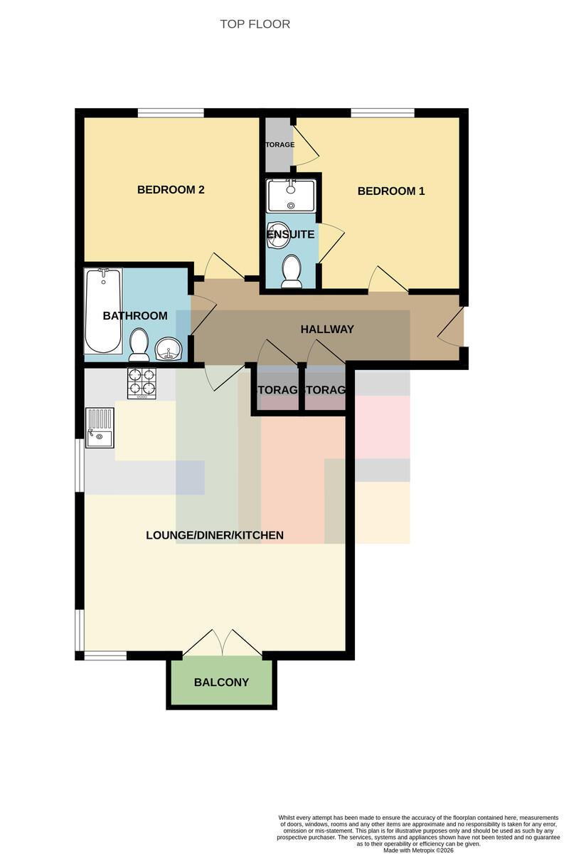 LOUNGE/KITCHEN/DINER Double glazed uPVC windows to the front and side aspect, plus uPVC doors leading to the private balcony. Carpeted flooring. Radiator. Pendant light and spotlights to ceiling. Space for dining. Fitted kitchen area with wall and base units across two walls, with work surfaces incorporating double stainless-steel sink with mixer tap over. Integrated washing machine, microwave and electric oven, with four ring gas hob and extractor over. Vinyl flooring. Part tiled walls. Ample storage. Space for fridge freezer and dishwasher.