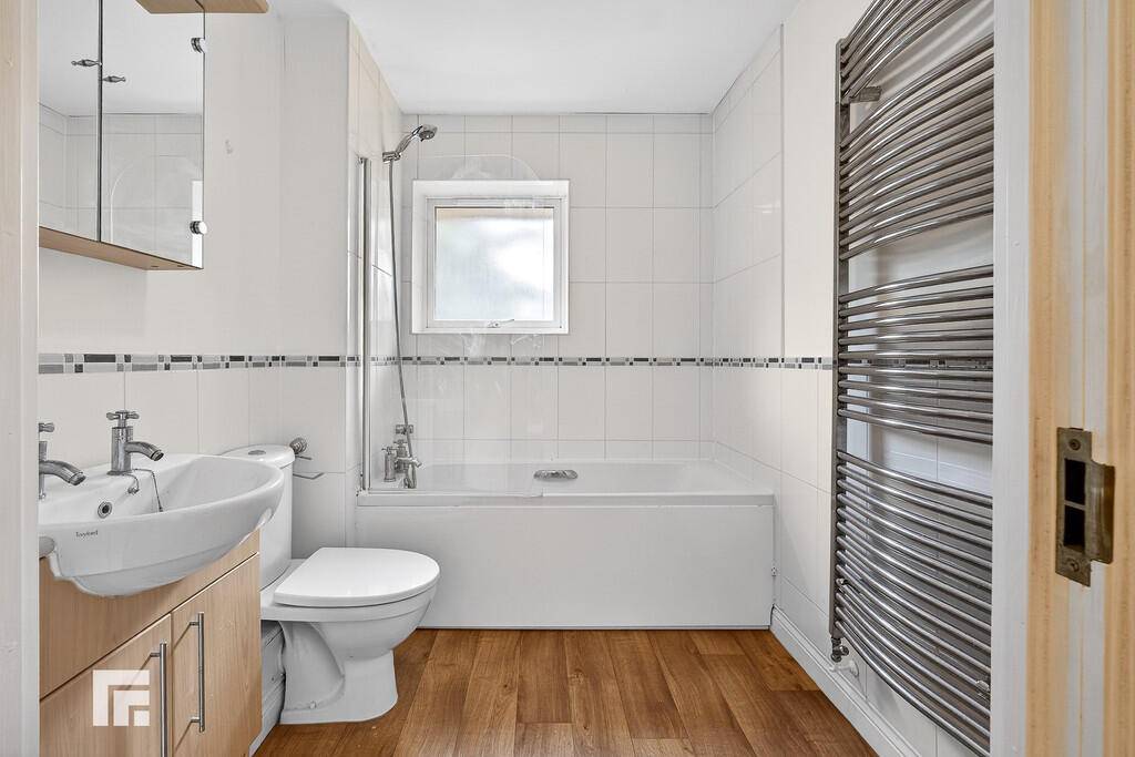 BATHROOM Double glazed obscure uPVC window to side. Vanity wash hand basin with storage under. Panelled bath with shower fixture and mixer tap over with folding shower screen. WC. Part tiled walls. Vinyl floor. Extractor fan. Shaver point. Heated towel rail.