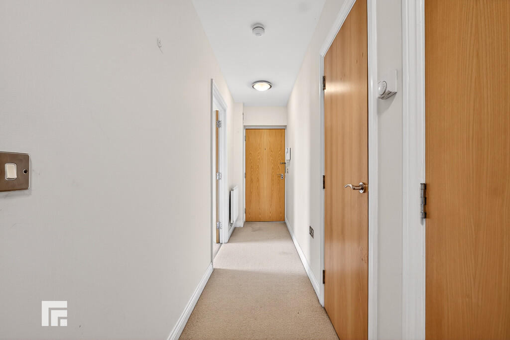 ENTRANCEHALLWAY Entered via wooden door with security spy hole leading from communal hallway. Carpeted flooring. Pendant light to ceiling. Wall mounted intercom. Radiator. Doors to all rooms, including two storage cupboards - one housing boiler.