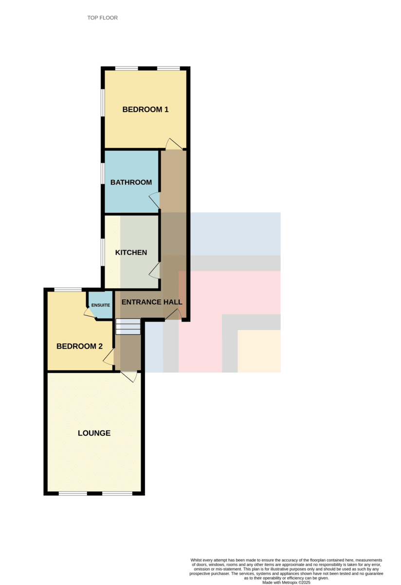 ENSUITE Tiled flooring and tiled walls. Radiator. WC. Pedestal wash hand basin with hot and cold tap over. Walk in shower cubicle with mains powered shower head attachment over. Spotlights.