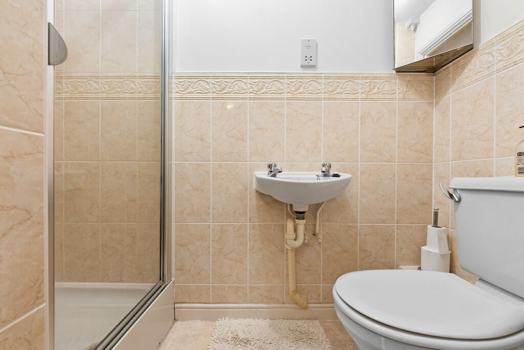 EN-SUITE Vinyl flooring. Part tiled walls. Shower cubicle with electric shower. Wash hand basin. W.C. Heated towel rail. Wall mounted mirrored cabinet. Shaver point. Heater. Extractor fan.