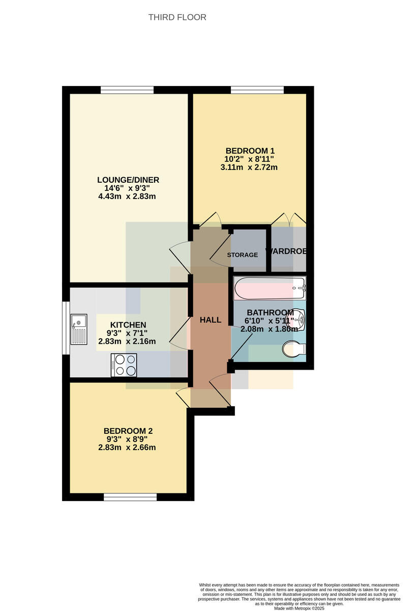 BEDROOMTWO10' 2" x 8' 11" (3.11m x 2.72m) Carpet to floor. Double glazed window. Pendant light fitting. Radiator. Power points.