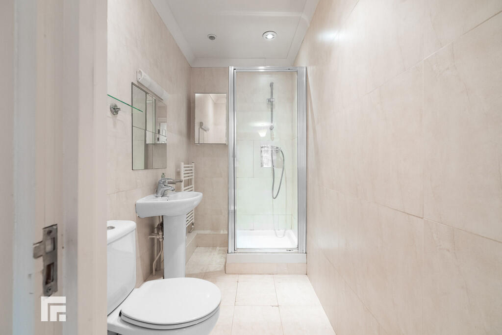 EN-SUITE8' 0" x 4' 3" (2.45m x 1.32m) Fitted with low level WC, pedestal wash hand basin and fitted shower cubicle. Fully tiled walls and floor. Spotlights. Extractor fan. Ladder radiator.