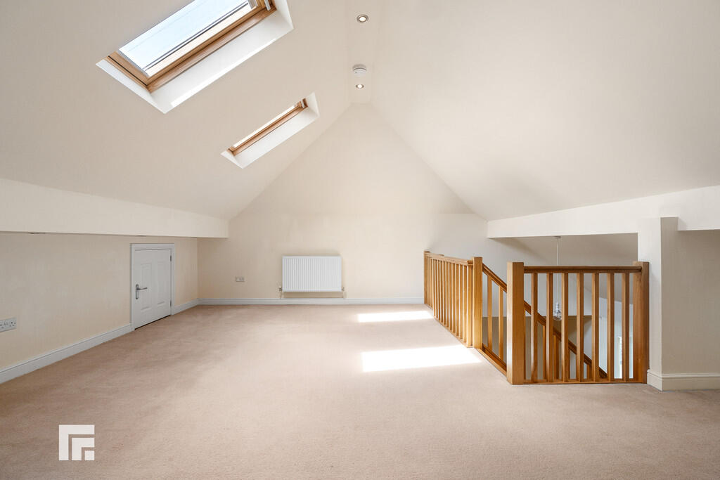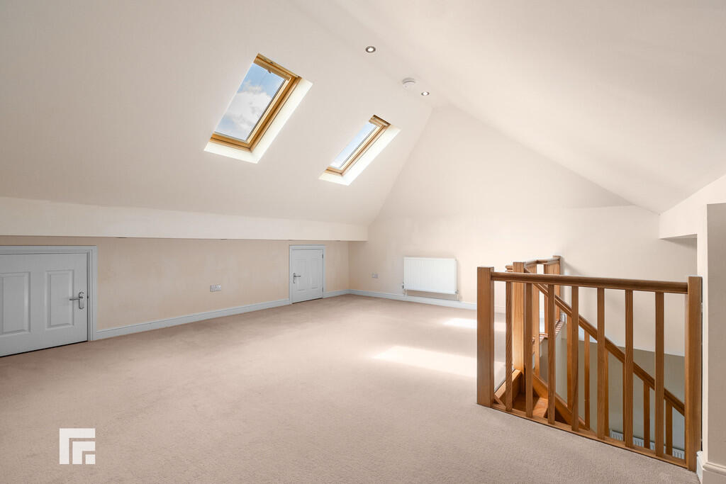 MEZZANINEFLOOR18' 10" x 17' 9" (5.75m x 5.42m) Large mezzanine. An ideal secondary reception room or a third bedroom with feature vaulted ceiling. Two double glazed velux windows to rear. Ample natural daylight. Storage into eaves. Carpeted flooring. Radiator. Spotlights.