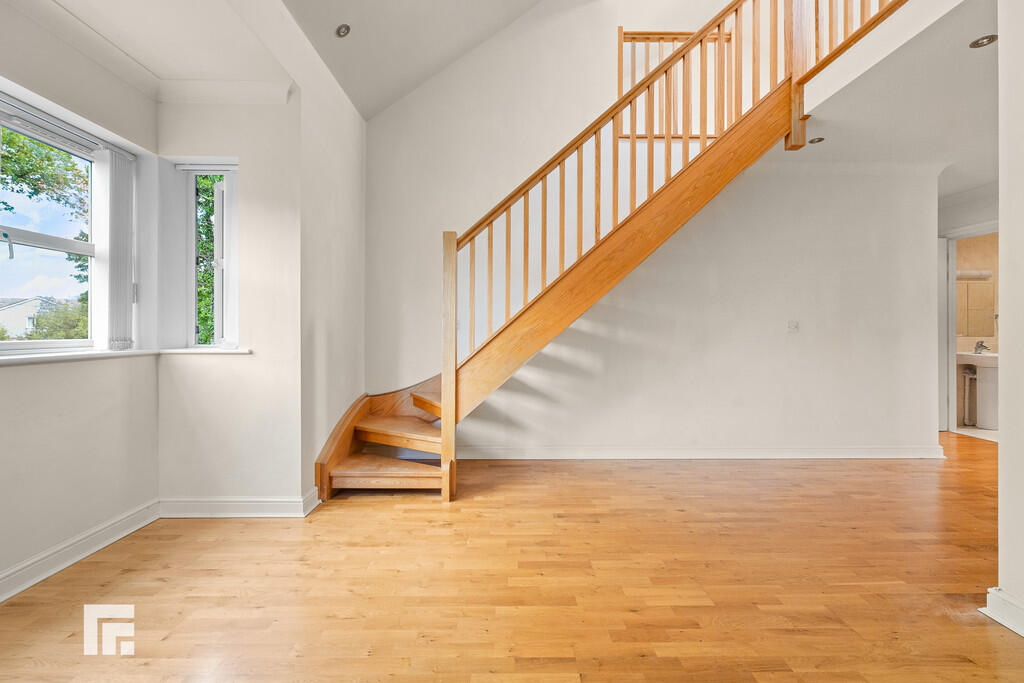 LOUNGE/DINER13' 1" x 12' 2" (3.99m x 3.71m) uPVC double glazed bay windows to front aspect with pleasant outlook. Ample natural daylight and high ceiling. Oak wood flooring. Radiator. Open tread oak wood staircase to mezzanine floor. Spotlights.