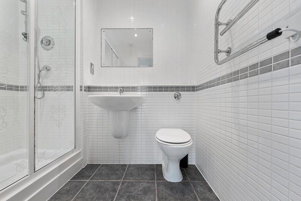 BATHROOM7' 1" x 6' 5" (2.17m x 1.98m) Tiled flooring. Fully tiled walls. Panelled bath, with shower over and glass shower screen. Wall mounted wash hand basin. W.C. Heated towel rail. Shaver point. Spotlights.