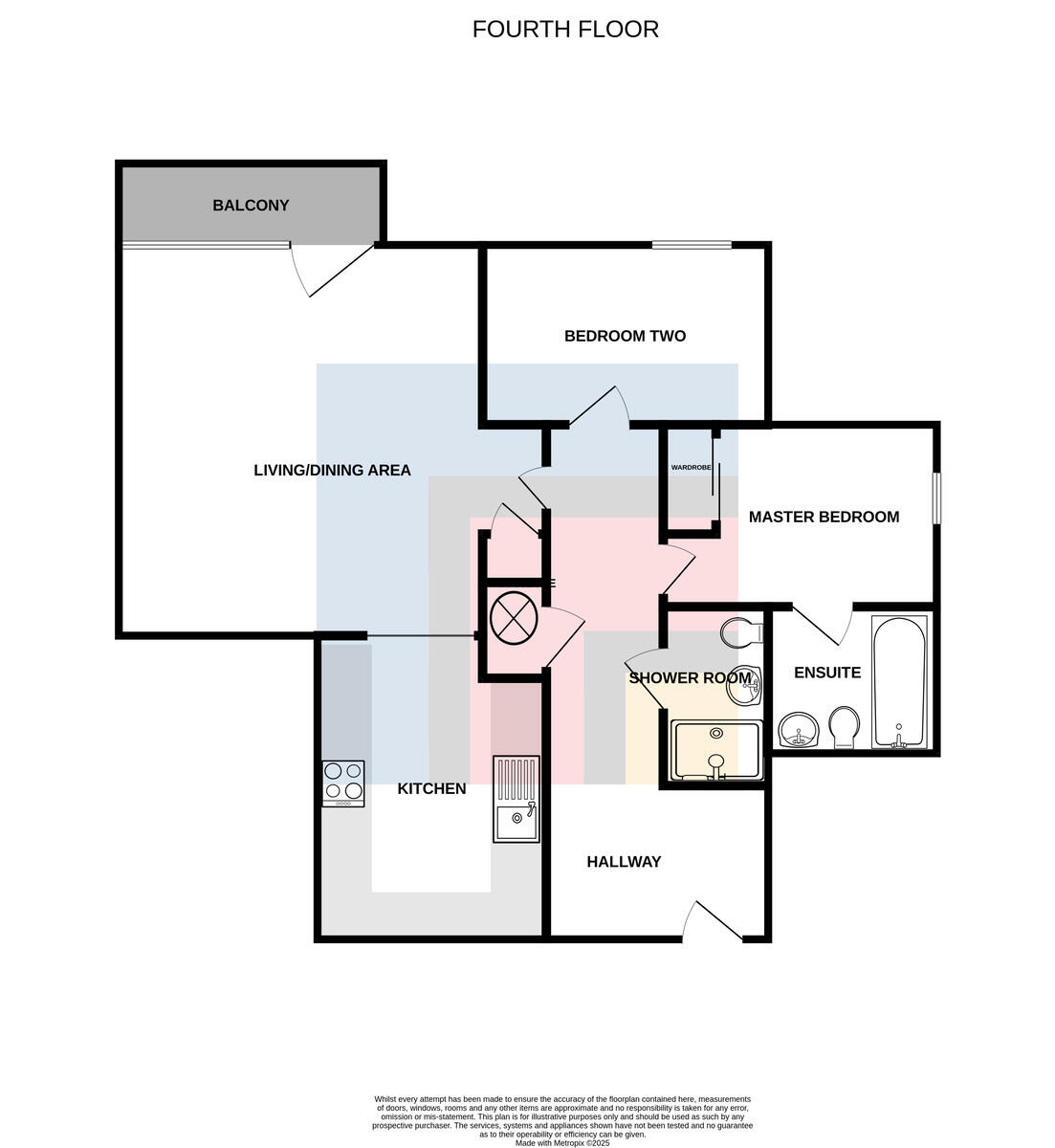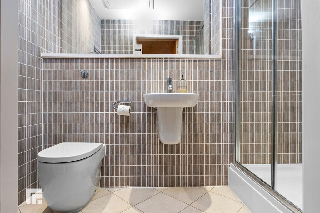 SHOWERROOM4' 9" x 8' 2" (1.45m x 2.50m) Modern shower room. Fully tiled walls and floor. White three-piece-suite comprising WC, wall mounted wash hand basin with mixer tap over, and double shower cubicle with mains shower over. Spotlights. Heated towel rail. Large wall mounted mirror. Shaver point. Extractor fan.