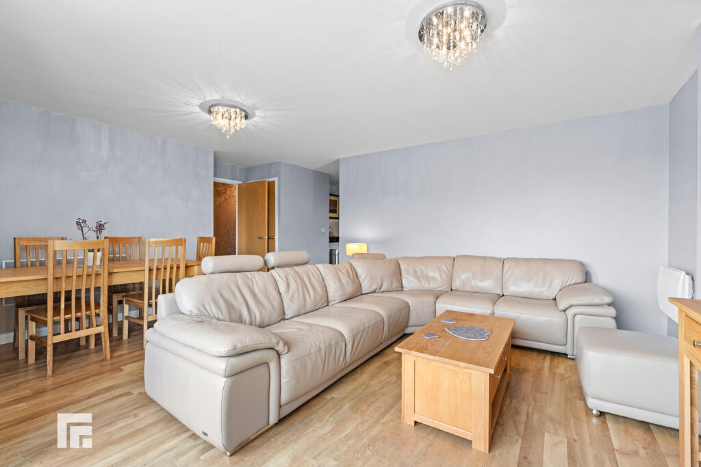 LIVING/DININGAREA18' 0" x 14' 11" (5.49m x 4.55m) Large double glazed uPVC window to front aspect with door leading to private balcony. Fantastic views and ample natural daylight. Spacious open plan living area with space for dining. Karndean flooring. Two wall mounted electric panel heaters. T.V Aerial point. Telephone point.