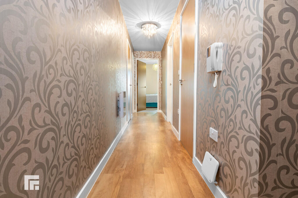 ENTRANCEHALL Entered via wooden door, with security spy hole. Large spacious hallway. Wall mounted video entry intercom system. Luxury karndean flooring. Built in storage cupboard, housing hot water tank. Wall mounted electric panel heater. Doors leading to all rooms.