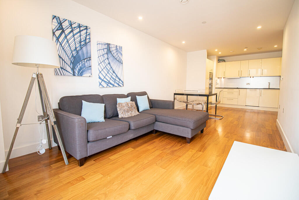 LOUNGE/KITCHEN/DINER26' 10" x 12' 0" (8.20m x 3.68m) Double glazed uPVC French doors, leading to Juliette balcony. Ample natural daylight. Wood effect laminate flooring. Underfloor heating. Modern fitted kitchen, with part tiled walls. Wall and base units, with work surfaces incorporating stainless steel sink, with dual tap. Built in microwave, oven, four ring NEFF hob and extractor hood over. Under unit lighting. Splash back. Integrated dishwasher and fridge freezer. Extractor fan. Spotlights. Telephone point. TV Aerial point. Spotlights. Open plan living.