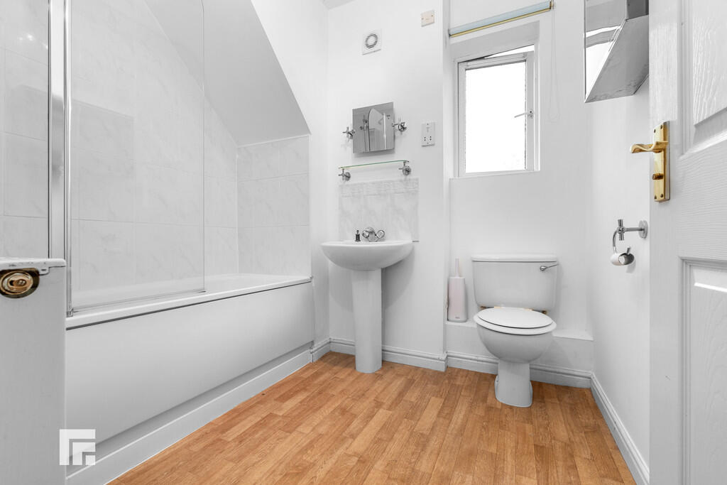 BATHROOM7' 7" x 7' 1" (2.33m x 2.17m) Obscure double glazed uPVC window to rear aspect. Vinyl wood effect flooring. Three-piece suite including panelled bath with shower over and glass shower screen, pedestal wash hand basin and W.C. Wall mounted radiator. Shaver point. Extractor fan. Wall mounted mirror and vanity unit.