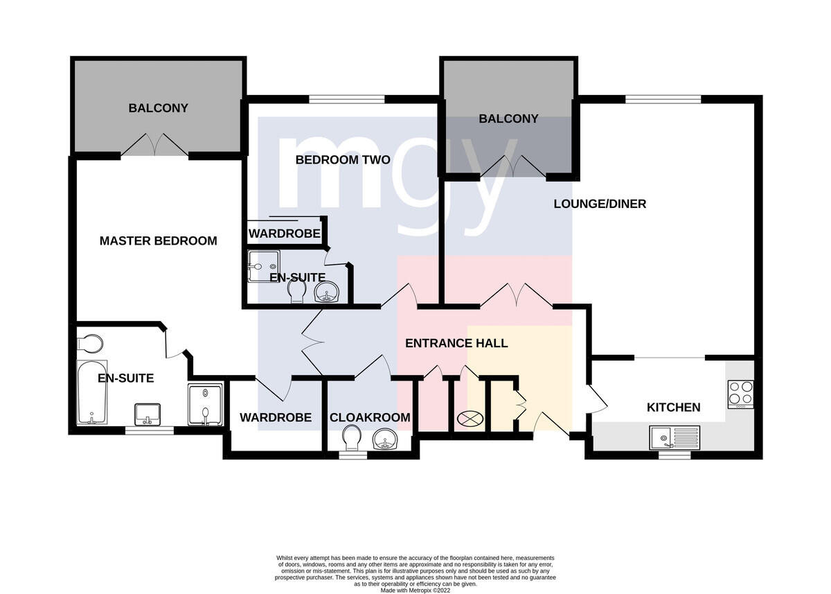 EN-SUITE9' 0" x 5' 10" (2.76m x 1.79m) Tiled flooring. Part tiled walls. Double shower cubicle, with mains shower. W.C. Wall mounted wash hand basin, with mixer tap. Large mirror over. Heated towel rail. Shaver point. Extractor fan. Spotlights.
