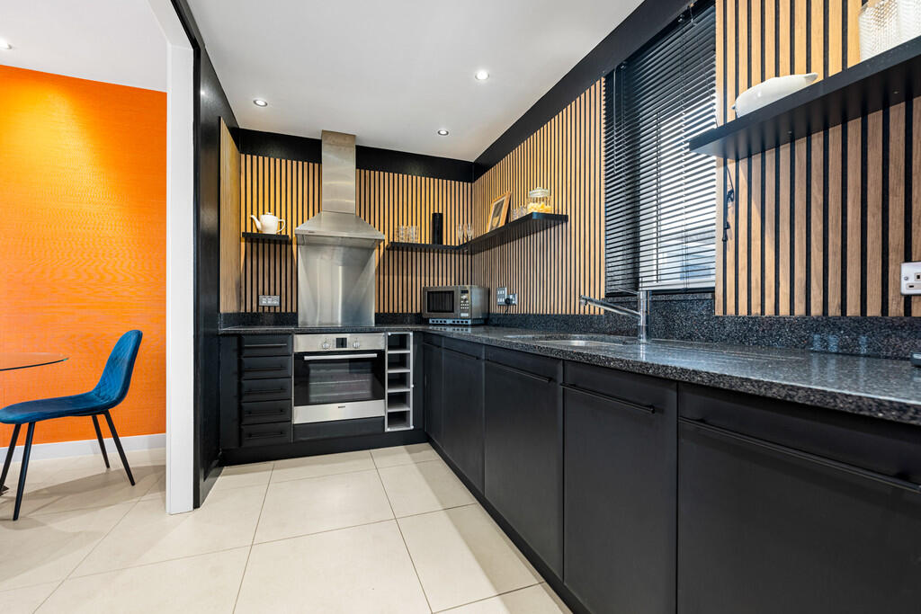 LOUNGE/DINER/KITCHEN26' 3" x 31' 0" (8.01m x 9.45m) An excellent living space with tiled flooring and access via double glazed doors onto a large decked terrace with impressive City Views. Double glazed window to front. TV aerial point. Telephone point. Spotlights. Two wall mounted electric panel heaters. A high quality fitted kitchen, granite work surfaces and glass mosaic tile splash backs. Under unit lighting. Integrated appliances including oven, microwave, dishwasher and fridge freezer. Four ring induction hob and extractor hood over. Extractor fan.