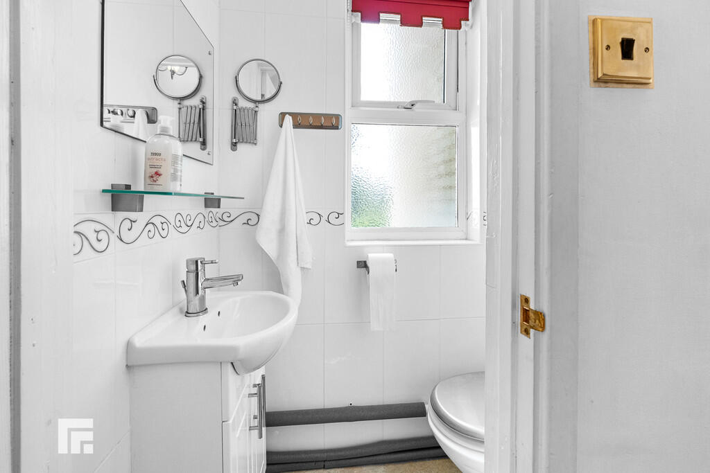 W.C Double glazed opaque window to the side. Closed cistern w.c with wash hand basin. Vinyl flooring. Smooth plastered walls and ceiling.