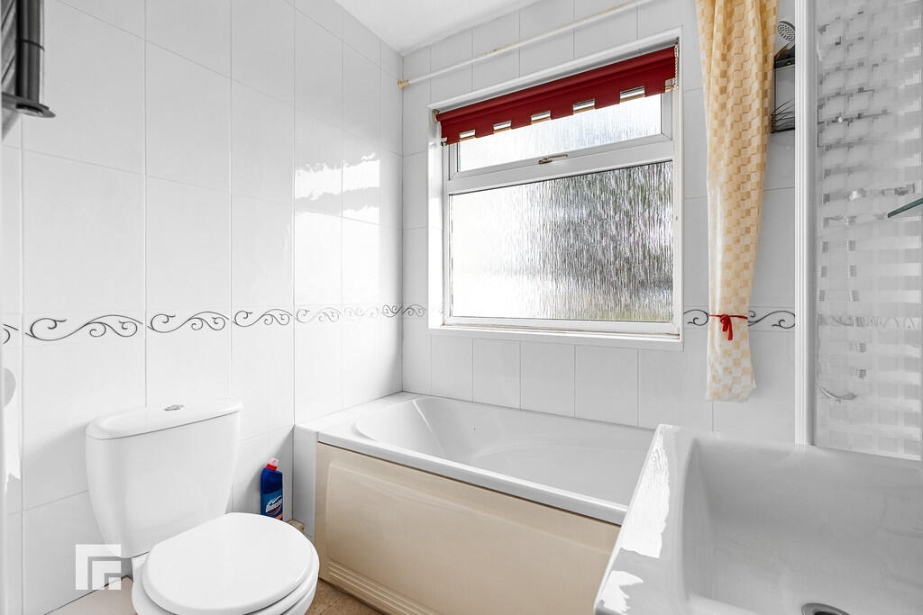 BATHROOM Double glazed window to the side. Suite to comprise panelled bath with shower over, closed cistern w,c and wash hand basin. Vinyl flooring. Smooth plastered walls and ceilings. Ceramic tile to splash back areas.