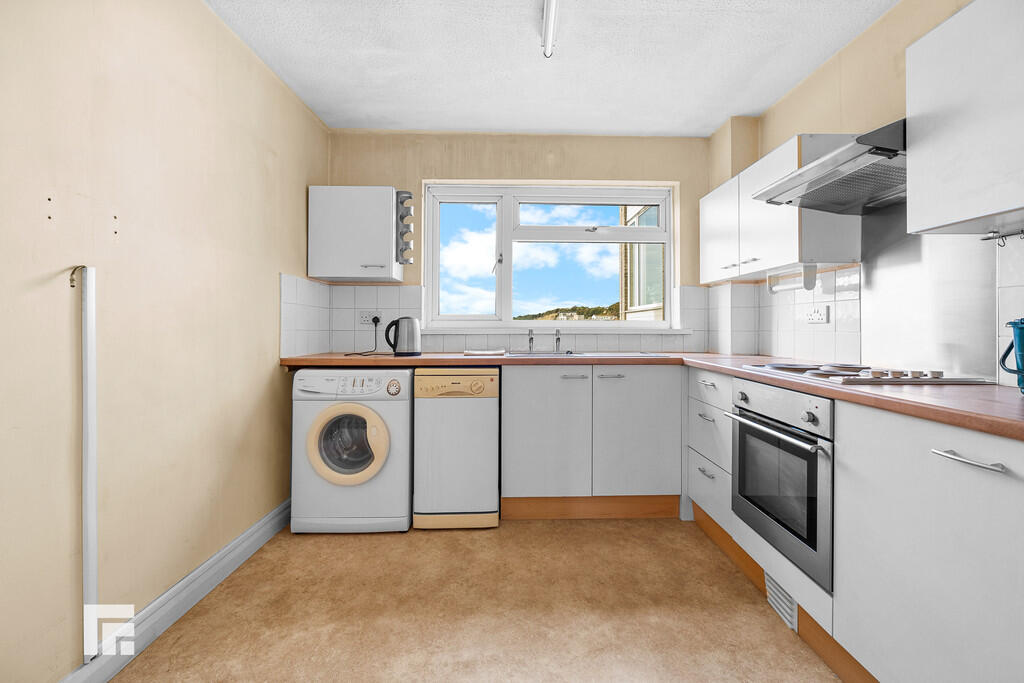 KITCHEN12' 7" x 9' 1" (3.84m x 2.77m) Double glazed window to the side offering extensive views over the Knap and far reaching sea views. Kitchen to comprise a range of base and wall units incorporating sink and drainer with mixer taps over. Four burner electric hob and oven with extractor over. Recess and plumbing for appliance and space for fridge/freezer. Ceramic tiling to splash back areas.