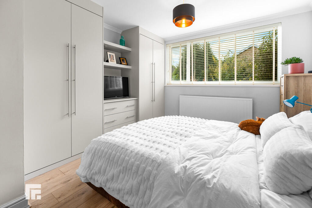 BEDROOMTHREE10' 4" x 8' 7" (3.15m x 2.63m) Overlooking the rear garden, a good sized third bedroom, quality laminate flooring, radiator and large storage cupboard with shelving.