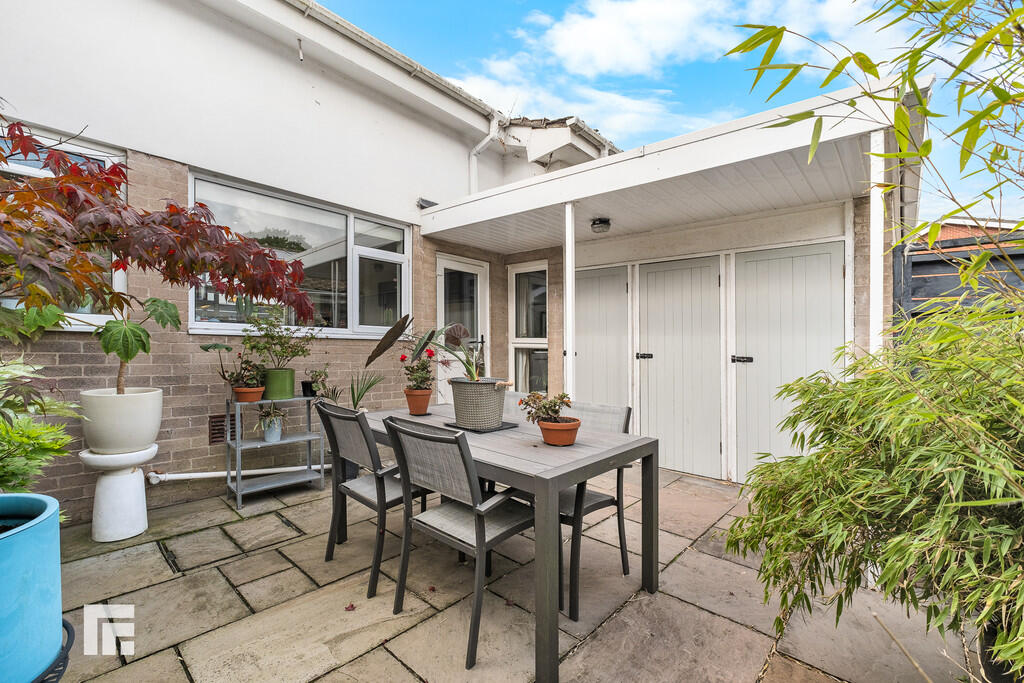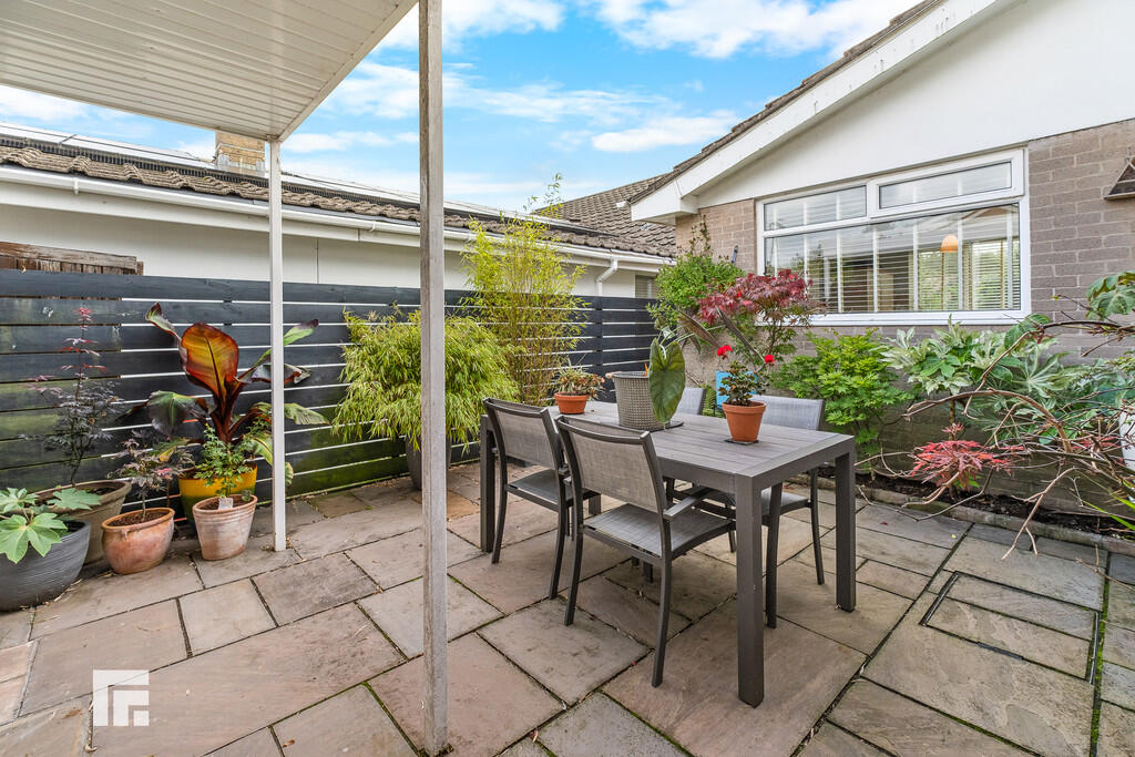SIDECOURTYARD A delightful side courtyard comprising paved patio and inset flower bed, timber gate to front and pathway to side. Two large storage cupboards and door to garage.