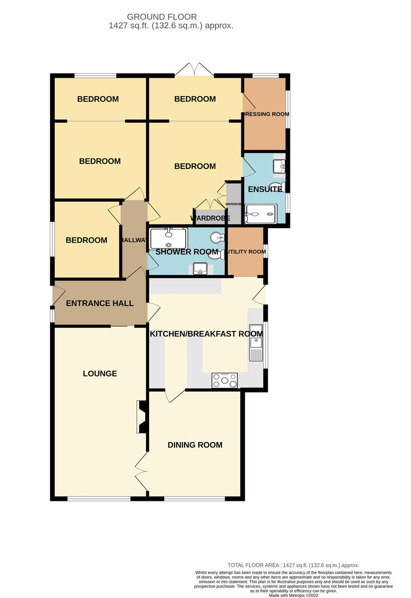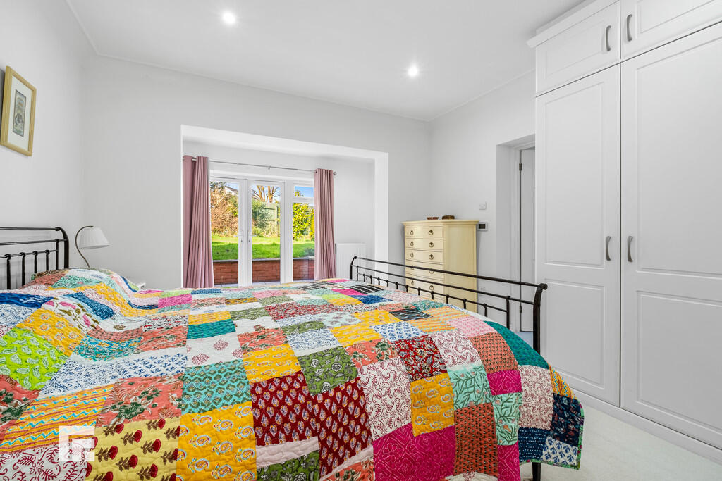BEDROOMONE19' 10" x 14' 0" (6.06m x 4.29m) A large bedroom suite to include uPVC double glazed French doors to rear. Fitted 'Hammonds' wardrobes. Two radiators. Spotlights. Doors to en-suite and dressing room/study.
