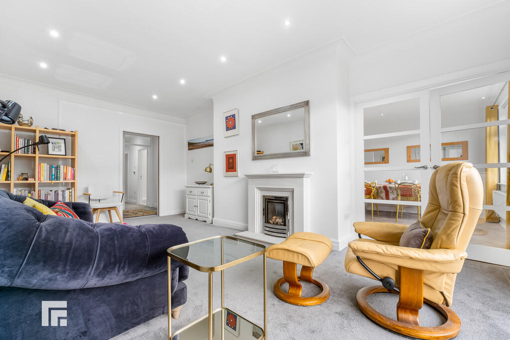 LOUNGE19' 10" x 11' 10" (6.07m x 3.62m) Feature full heigh uPVC double glazed window to front. Glazed double doors to dining room. Gas fire with limestone surround and hearth. Spotlights. Radiator.
