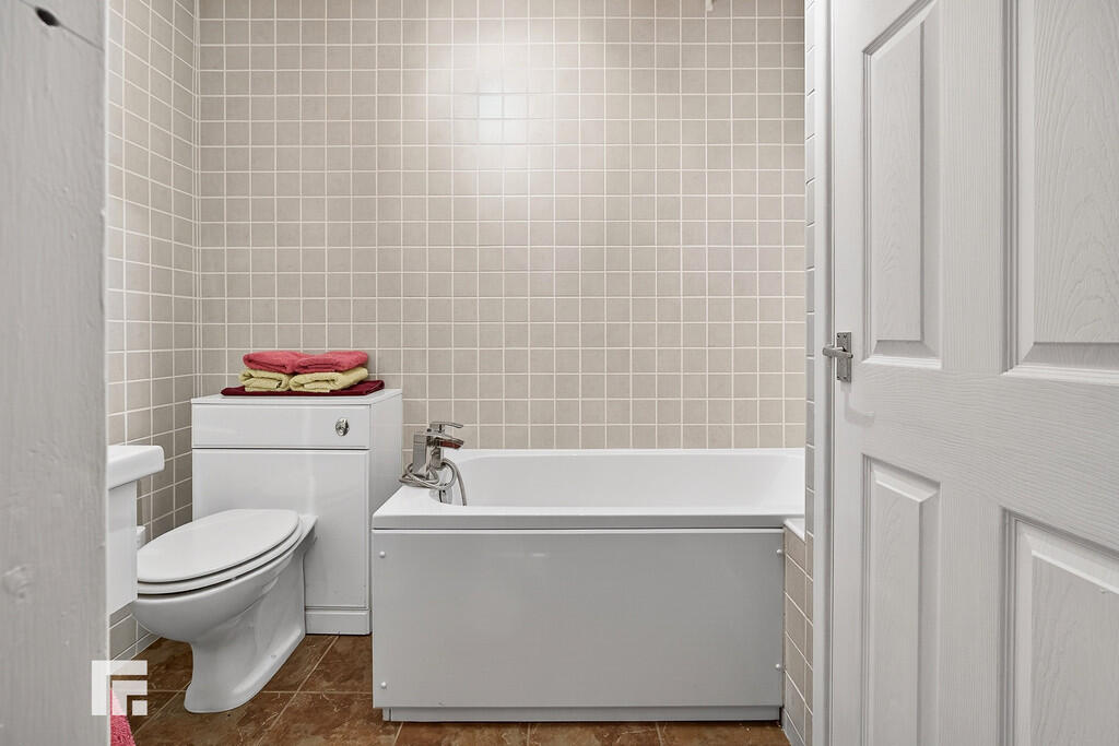 FAMILYBATHROOM8' 0" x 5' 3" (2.46m x 1.61m) Quality white suite comprising low level wc, vanity wash basin with storage below, panelled bath with shower mixer tap. Tiled splash back. Storage cupboard with shelving. Tiled flooring. Extractor fan. Chrome heated towel rail.