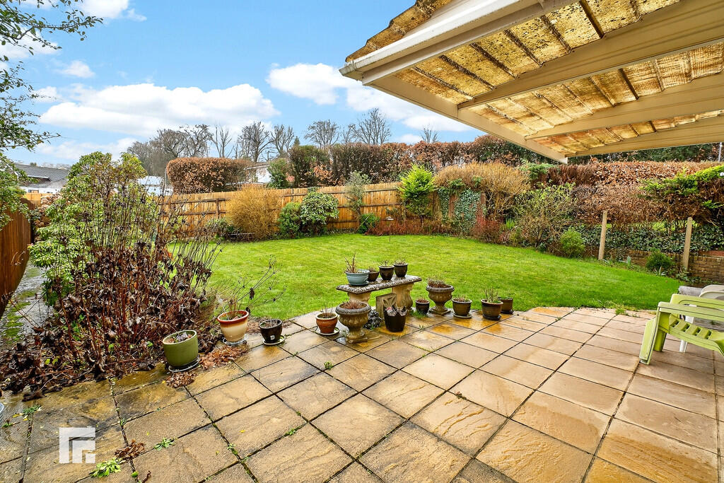 REARGARDEN Enjoying a south easterly aspect, paved patio leading onto a large area of lawn with neat beds of plants and shrubs. Access to side.
