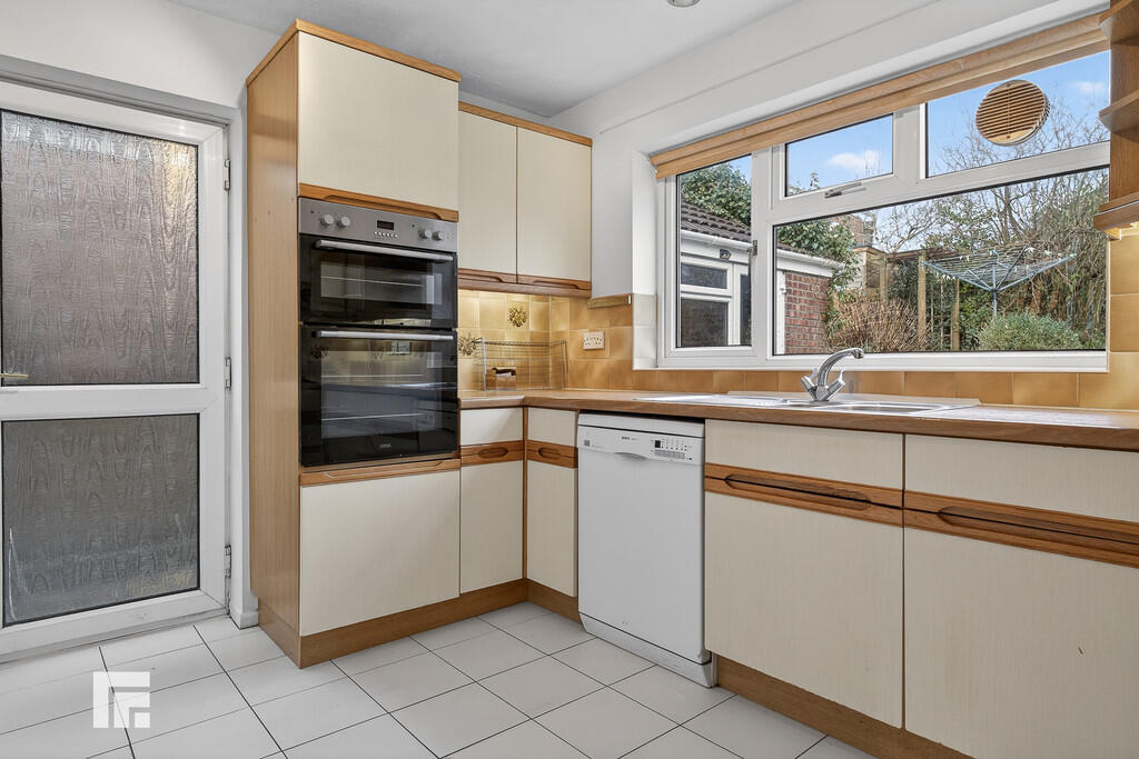 KITCHEN10' 11" x 9' 7" (3.33m x 2.94m) With units and worktops to three sides. Inset 1.5 bowl stainless steel sink with side drainer. Inset four ring gas hob with concealed cooker hood above. Integrated oven and grill. Matching range of eye level wall cupboards. Plumbing for dishwasher. Space for fridge freezer. Tiled splash back. Storage cupboard. Cupboard housing 'Worcester' combi gas central heating boiler. Tiled flooring. Upvc double glazed door to side. Window overlooking the rear garden. Radiator.
