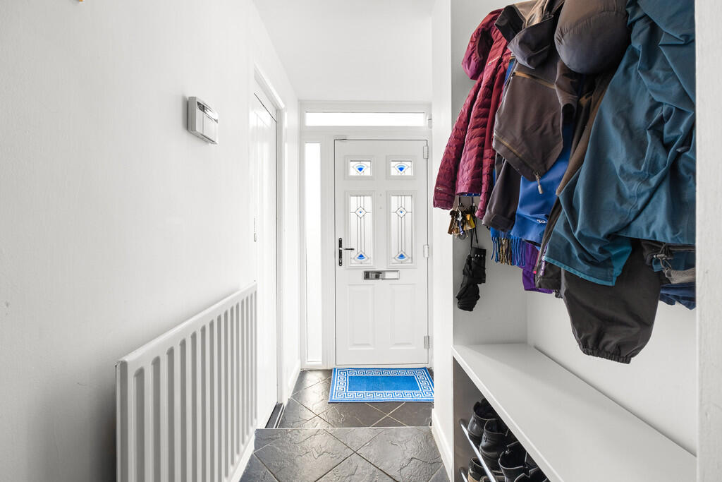 ENTRANCEHALLWAY Approached via a 'Solidor' composite entrance door leading to the entrance hallway. Floor to ceiling obscured double glazed windows to side. Tiled flooring. Radiator. Door to lounge. Door to garage.