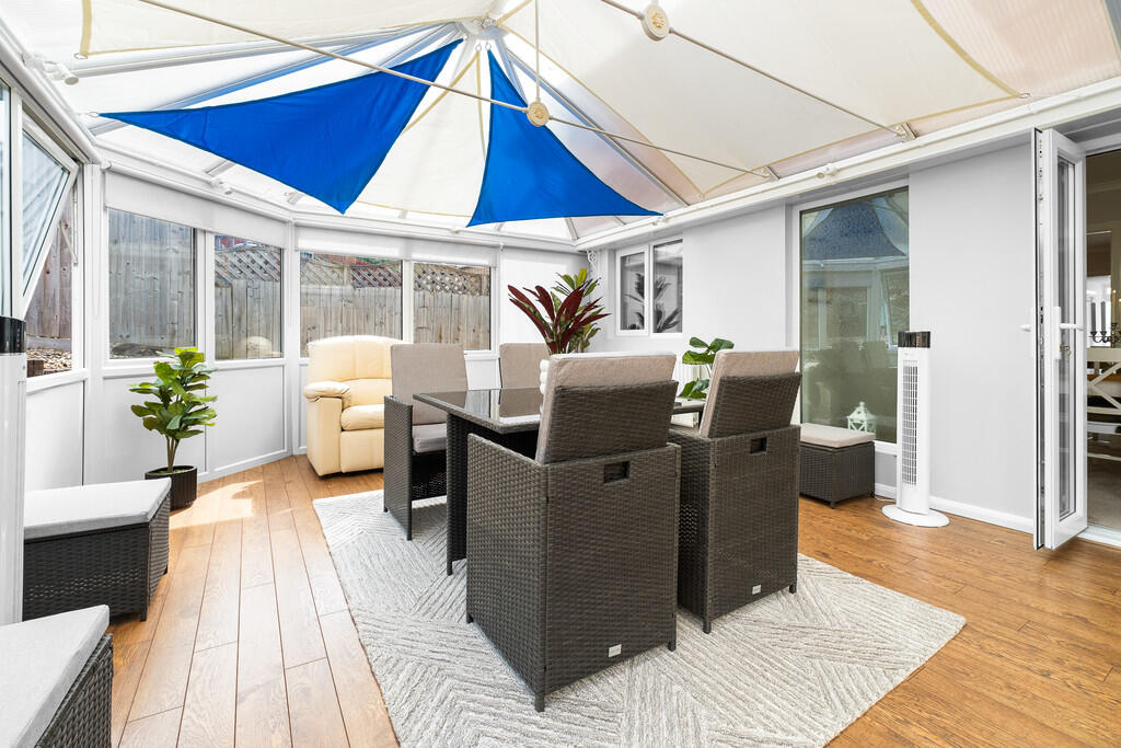DININGROOM11' 6" x 8' 11" (3.53m x 2.74m) With french doors to the large conservatory and opening to the kitchen. Ample space for large family dining table. Obscured glass window to rear. Recessed spotlights. Vertical radiator.