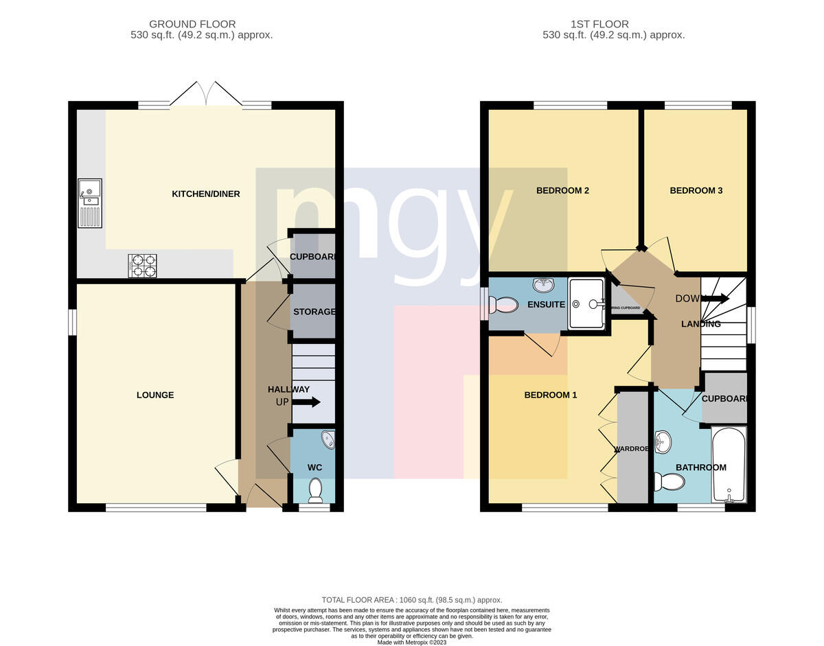 BEDROOMONE13' 3" x 11' 7" (4.04m x 3.55m) Overlooking the open green space to front, an excellent sized principal bedroom, 'Hammond' fitted wardrobes to one side, radiator and door to ensuite.